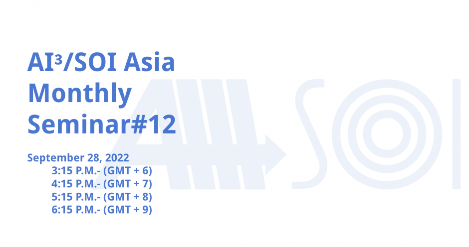 The 12th monthly seminar was held on 28 September 2022 online with 12 real-time participants from the AI³ /SOI Asia community.