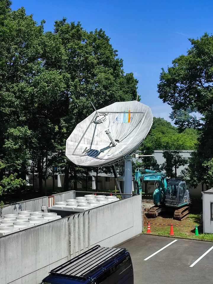 The parabolic antenna that had been installed in Keio University Shonan Fujisawa Campus (Japan) and serving for Asia-wide Satellite Internet communication for a long time – a C-band earth station facility – was decommissioned on August 3, 2022.