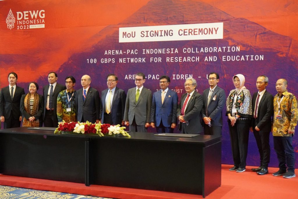 The signing of the MoU was held on the sidelines of the G20 Digital Economy Ministers Meeting in Bali, witnessed by Minister of Communication and Informatics Johnny G. Plate and Minister for Digital Transformation of Japan Kono Taro. The 100 Gbps ARENA-PAC network which connects IDREN with UB as its gateway is a huge leap forward for Indonesia, with speeds 100 times greater than the current network. For further information, please refer to the following link.