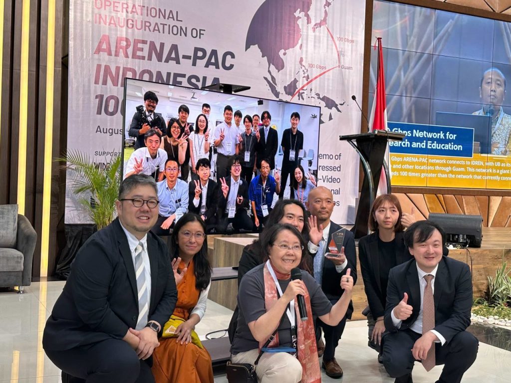 On August 9, 2023, SOI Asia’s partner ARENA-PAC, a broadband backbone network with the purpose of research and education operated by the WIDE Project, Universitas Brawijaya (UB) and Indonesia Research and Education Network (IDREN) held a ceremony at UB and Keio University connected using an 8K uncompressed video conference to mark the operation of a 100 Gbps high-speed network for research and education in Indonesia.
